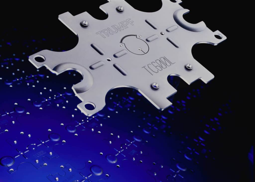 Vi råder over den fulautomatiske Trumatic 6000 L. Med Denne maskine kombineres hurtigheden ved stansning og den høje kvalitet fra laserskæring. Vi kan f.eks. udstanse alle huller og skære ydrekonturen uanset kompleksiteten.